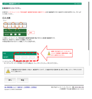 - (3)商工中金ダイレクトをお申込みの際に設定した4桁の暗証番号を入力